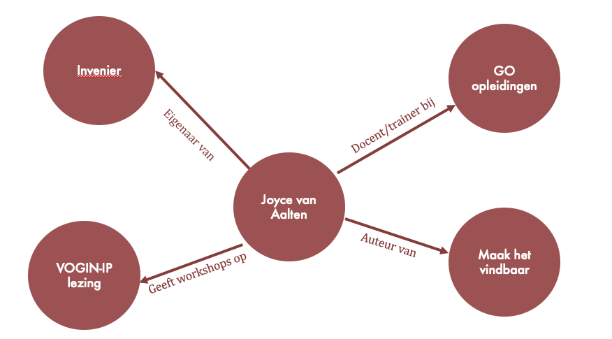 Ik deel graag mijn kennis met geïnteresseerden. Dat doe ik bijvoorbeeld door het schrijven van artikelen en boeken. Zo ben ik mede-auteur van het leerboek “Maak het Vindbaar”. Daarnaast geef ik regelmatig presentaties en workshops. Dat doe ik in opdracht van organisaties, maar ook op openbare congressen, seminars en netwerkbijeenkomsten, waaronder de Taxonomy Boot Camp London en VOGIN-IP lezing. Via GO Opleidingen verzorg ik trainingen op het gebied van vindbaarheid, informatiestructuren, infographics en SharePoint/Office 365.